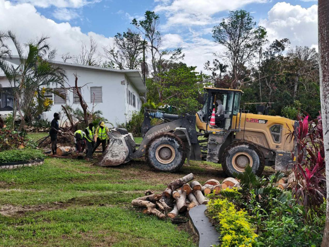 在和院方代表取得联系后,二人抽调4名工人以及挖掘机、卡车等机械设备赶赴现场。但在到达福利院门口时,眼前的景象比托马斯描述的更令人揪心。断裂的砖石堆在门口,被狂风扭曲的铁门斜倚在积水中,上面的彩绘卡通图案已被泥浆覆盖。院子里,三棵一人合抱的凤凰木倒在草坪上,粗壮的枝干压垮了儿童游乐设施的滑梯,几个孩子正扒在活动室窗边,睁着惶恐的大眼睛向外张望。