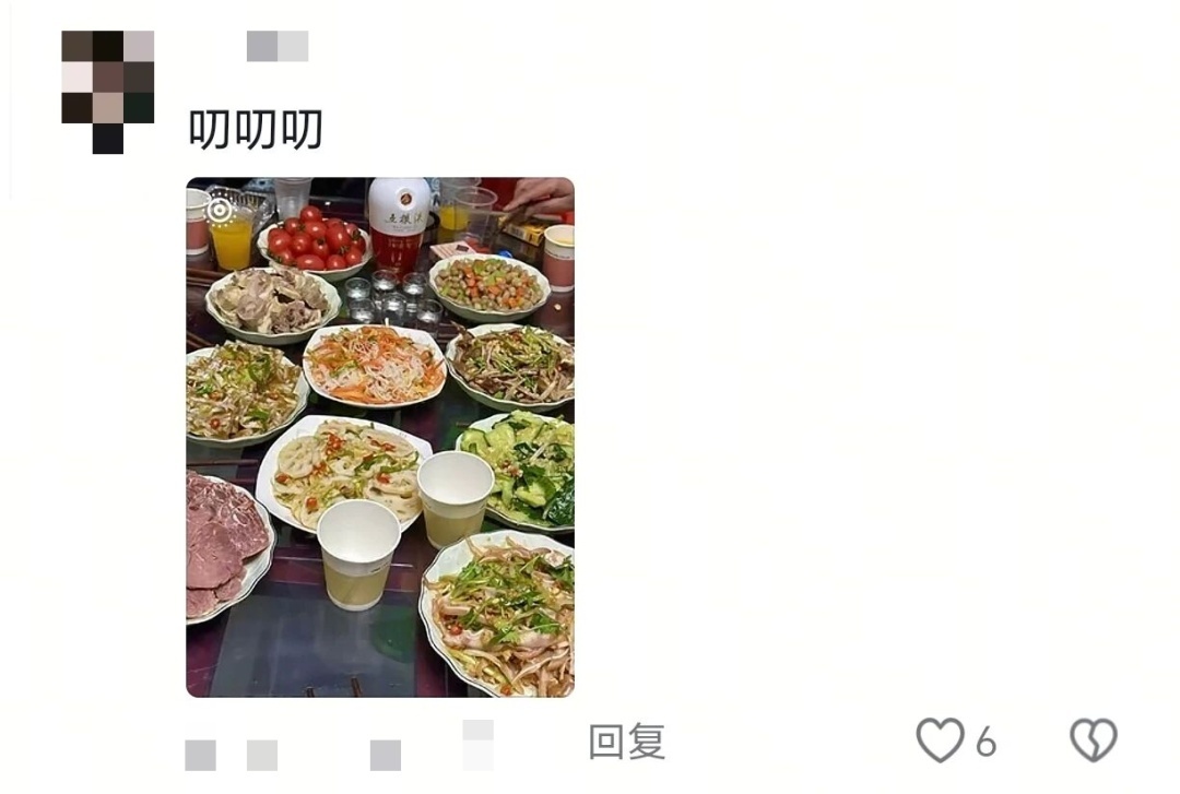 有人晒出家人做的满满一桌菜: