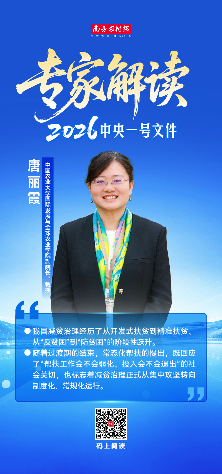 围绕文件有关部署,南方农村报记者采访了中国农业大学国际发展与全球农业学院副院长、教授唐丽霞。她表示,我国减贫治理经历了从开发式扶贫到精准扶贫、从“反贫困”到“防贫困”的阶段性跃升。随着过渡期的结束,常态化帮扶的提出,既回应了“帮扶工作会不会弱化、投入会不会退出”的社会关切,也标志着减贫治理正式从集中攻坚转向制度化、常规化运行。过去五年过渡期的实践探索,为常态化帮扶的开展奠定了制度共识,也形成了一套成熟的技术方法,让常态化帮扶有章可循、有据可依。