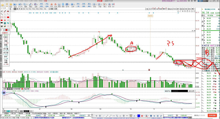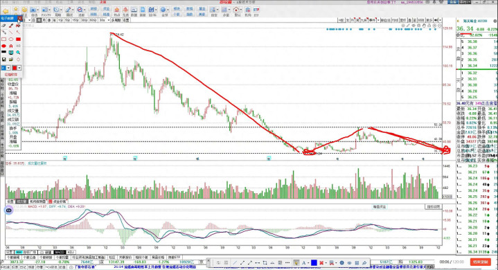 我认为反转可能小结构反转近在眼前,到时候能不能走的出出来还要看能不能过掉三十七块四,过不掉这个位置就有可能做中轴震荡之后再下跌,继续破新机。但是大家如果从中长线来考虑择期去看看有没有机会。