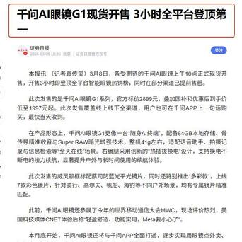 【3小时登顶热销榜,不到半天就售罄,搅动智能眼镜行业的鲶鱼出现了】如今,智能眼镜行业已经进入百镜大战的局面,就看谁能从这张大战中脱颖而出了。值得一提的是,就在昨天,千问AI眼镜G1正式现货发售后,顿时成为了行业最耀眼的存在。